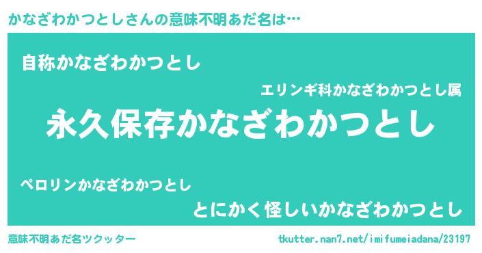 | 胡散臭い通販商品みたいなあだ名 | 『前代未聞の健康食品…その名も「かなざわかつとし」』 |