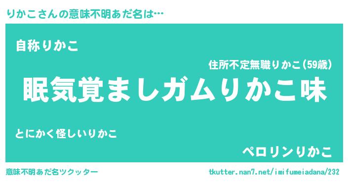 | 欧米人風あだ名 | 『ダニエルりかこ』『ケンブリッジりかこ』 |