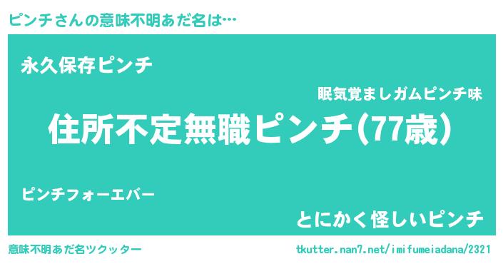 | ヘコむあだ名 | 『ピンチ(苦笑)』『ピンを』 |