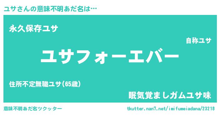 | ファンタジー風あだ名 | 『エターナルユサー』『ユサディッシュ』 |