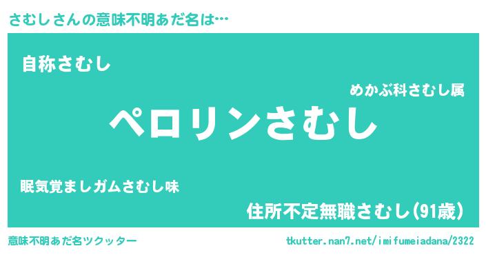 | 胡散臭い通販商品みたいなあだ名 | 『モテモテ間違いなし水晶球…その名も「さむし」』 |