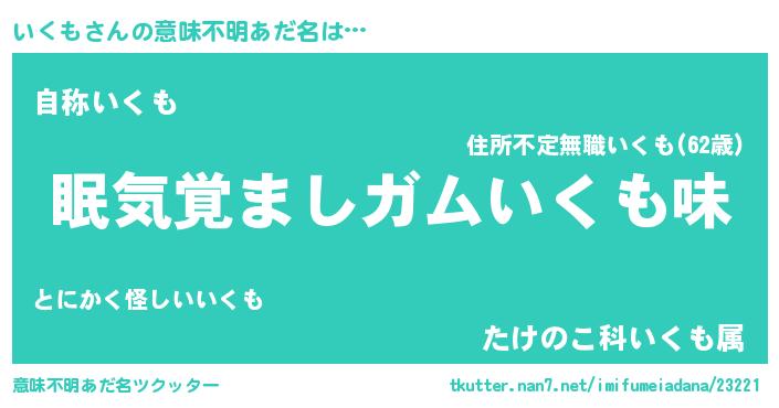 | ヒーロー風カッコイイあだ名 | 『愛の使者いくも』『最強戦士イクモ』 |