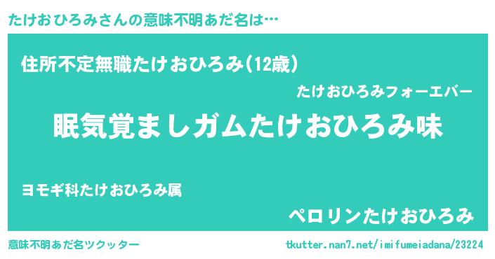 | ヘコむあだ名 | 『たけもー』『なまこ酢』『たけを』 |