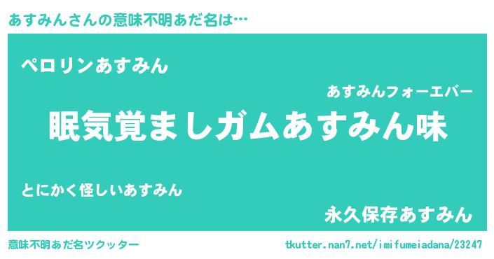 | 欧米人風あだ名 | 『ダニエルあすみん』『マイケルあすみん』 |