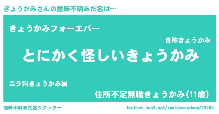 | ヒーロー風カッコイイあだ名 | 『幻影騎士キョ』『仮面キョダー』 |