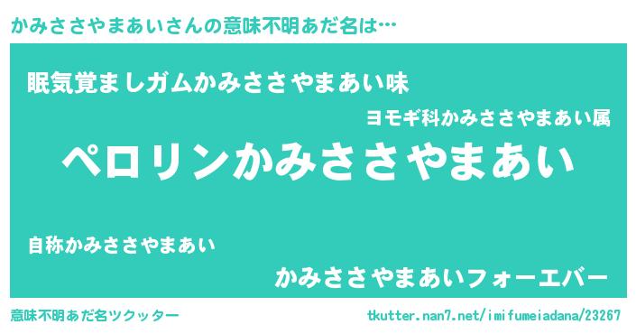 | ヒーロー風カッコイイあだ名 | 『スーパーカミササヤマアイ』 |