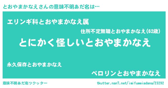 | ピコ太郎風あだ名 | 『トオ一郎』『トコ三郎』『ピコト郎』 |