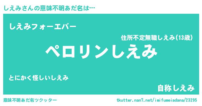 ヘコむあだ名 | 『しえにゅー』『なまこ酢』 |