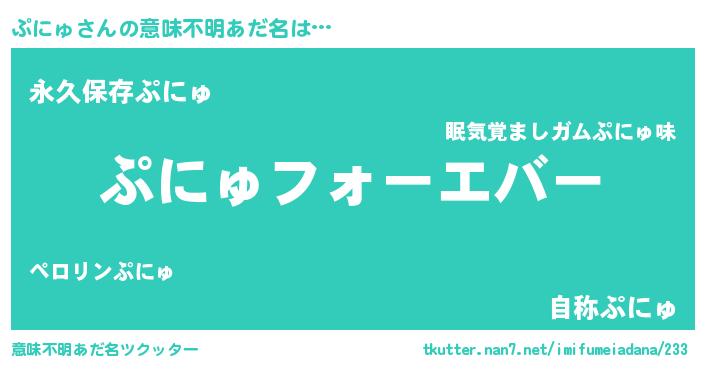 | ヒーロー風カッコイイあだ名 | 『ウルトラぷにゅマン』『ネオプニュ』 |