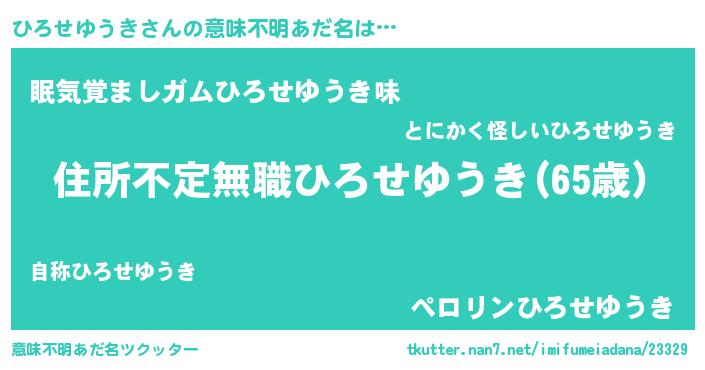 | 男性向けラノベタイトル風あだ名 | 『魔弾の王とひろせゆうき』 |