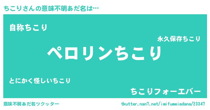 | 男性向けラノベタイトル風あだ名 | 『ちこりの憂鬱』『はたらくちこりさま!』 |