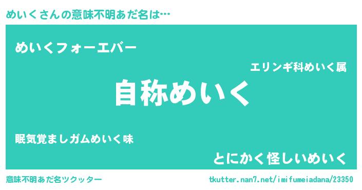 | 欧米人風あだ名 | 『めいく・ステッグマイヤー』 |