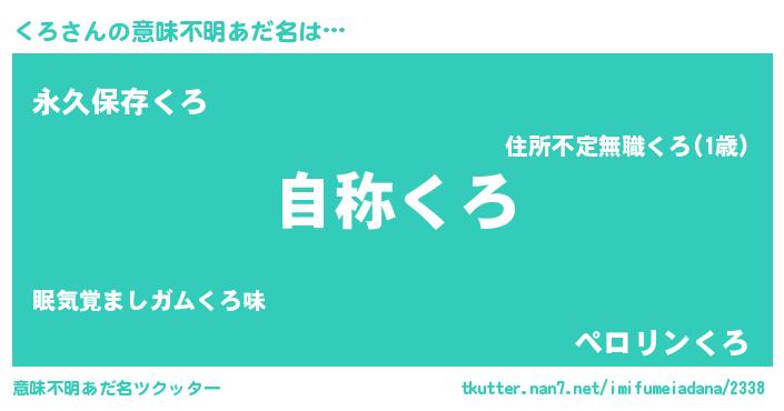 | 男性向けラノベタイトル風あだ名 | 『Re:くろから始める異世界生活』 |