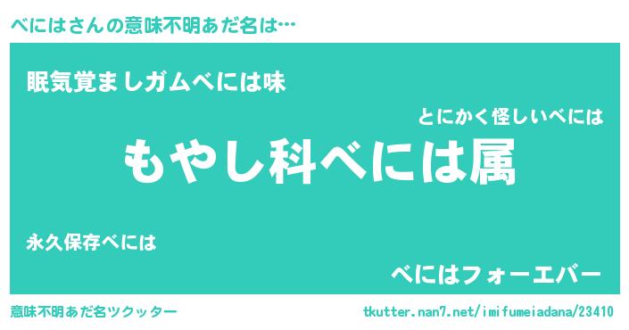 | 男性向けラノベタイトル風あだ名 | 『転生したらべにはだった件』 |