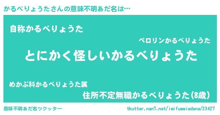 | 男性向けラノベタイトル風あだ名 | 『ダンジョンにかるべりょうたを求めるのは間違っているだろうか』 |