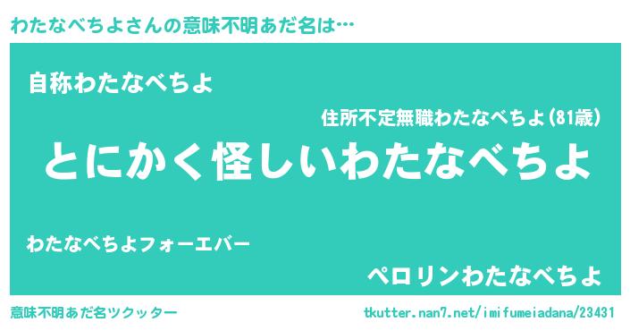 | 女子向けラノベタイトル風あだ名 | 『わたなべちよは平凡を望む』 |