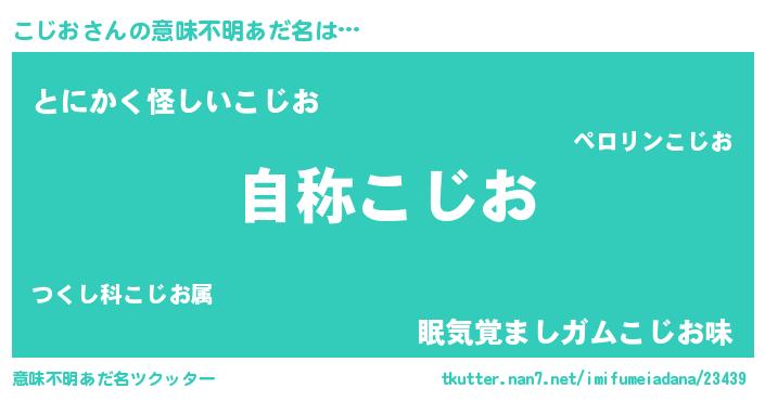 | 男性向けラノベタイトル風あだ名 | 『Re:こじおから始める異世界生活』 |