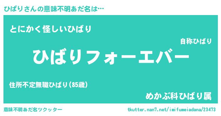 | 女子向けラノベタイトル風あだ名 | 『ひばりの雑貨屋さん』『闇のひばり』 |