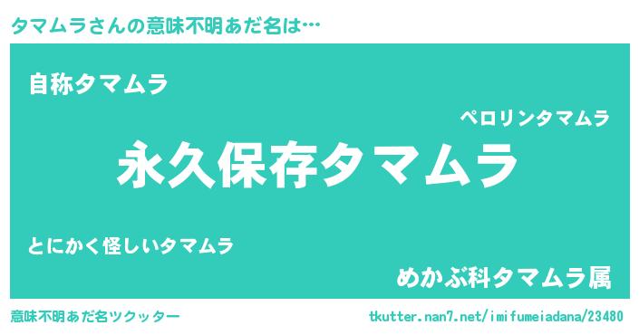 | ヒーロー風カッコイイあだ名 | 『ネオタマムラ』『超時空戦士タマムラ』 |