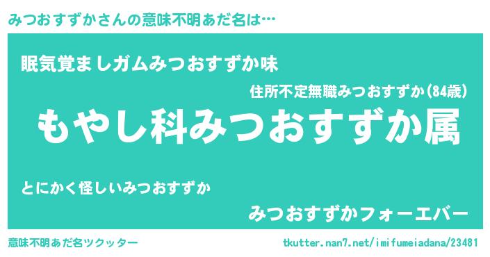 | 胡散臭い通販商品みたいなあだ名 | 『お金では代えられない隕石のかけら…その名も「みつおすずか」』 |