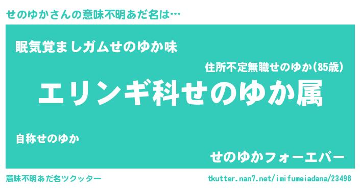 | 男性向けラノベタイトル風あだ名 | 『セノユカスレイヤー』 |