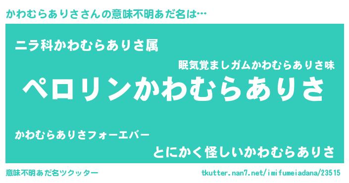 | 胡散臭い通販商品みたいなあだ名 | 『億万長者になれる霊験あらたかなお札…その名も「かわむらありさ」』 |