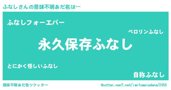 | 男性向けラノベタイトル風あだ名 | 『ふなしという概念が存在しない退屈な世界 』 |
