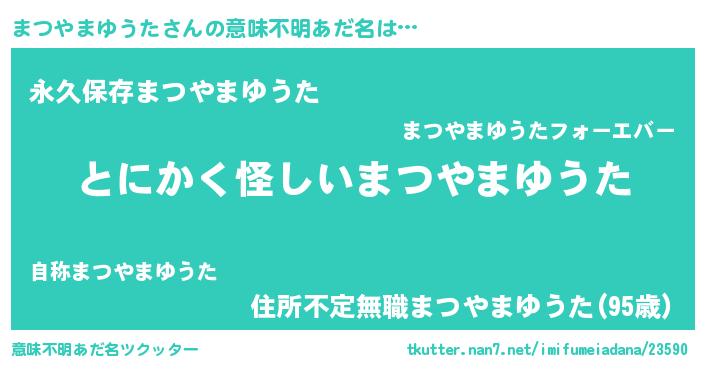 | ポケモン風あだ名 | 『ヒマツヤマユウタ』『マツゴンZ』 |