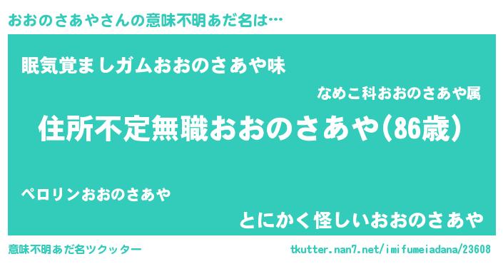 | 男性向けラノベタイトル風あだ名 | 『この素晴らしい世界におおのさあやを!』 |