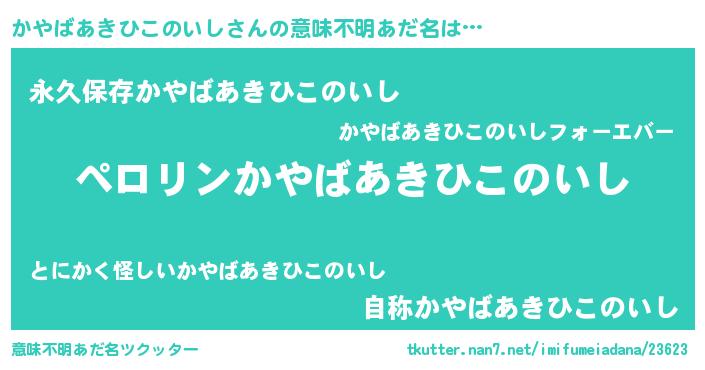 | 男性向けラノベタイトル風あだ名 | 『かやばあきひこのいしに滅ぼされるだけの簡単なお仕事です』 |
