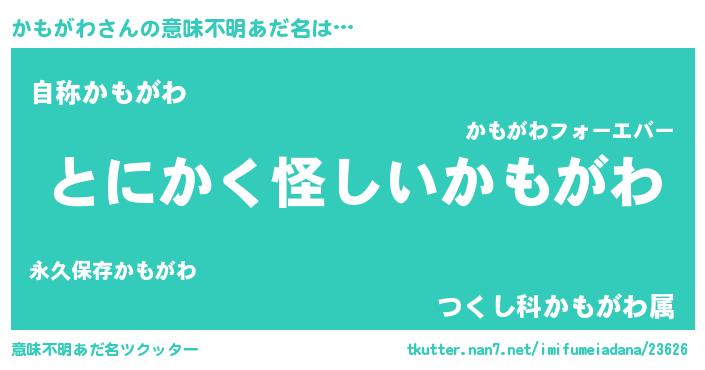 | 女子向けラノベタイトル風あだ名 | 『かもがわは平凡を望む』 |