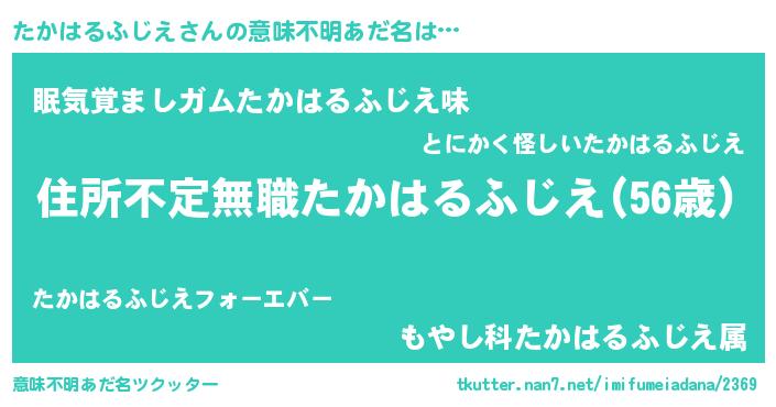 | 欧米人風あだ名 | 『ダレノガレたかはるふじえ』 |