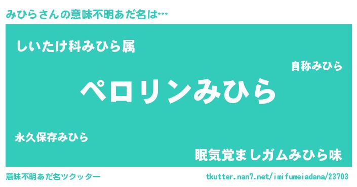 | 男性向けラノベタイトル風あだ名 | 『みひらの憂鬱』『ミヒラスレイヤー』 |