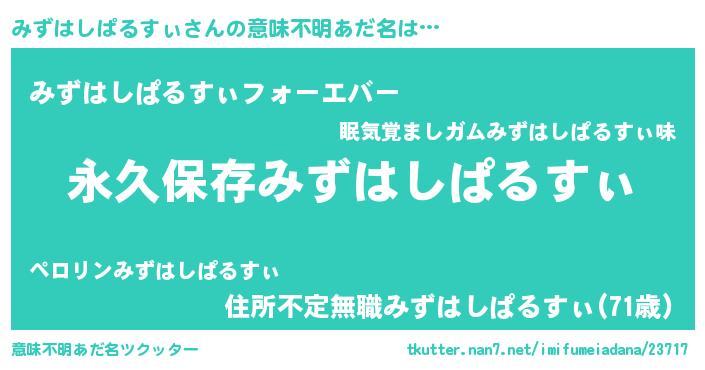 | 胡散臭い通販商品みたいなあだ名 | 『前代未聞の水素水…その名も「みずはしぱるすぃ」』 |
