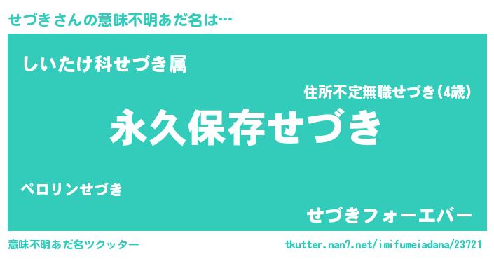 | 男性向けラノベタイトル風あだ名 | 『せづきという概念が存在しない退屈な世界 』 |