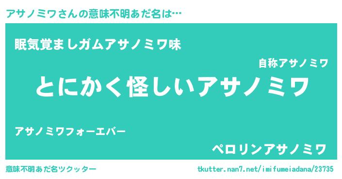 | 男性向けラノベタイトル風あだ名 | 『ダンジョンにアサノミワを求めるのは間違っているだろうか』 |