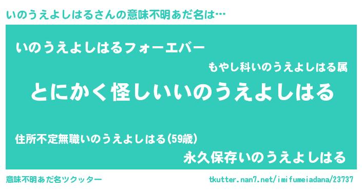 | 女子向けラノベタイトル風あだ名 | 『いのうえよしはるの卵を拾いまして』 |