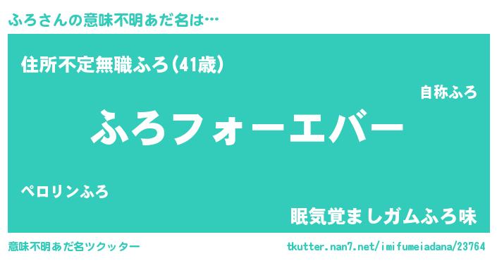 | 女子向けラノベタイトル風あだ名 | 『ふろの雑貨屋さん』『死神ふろの再婚』 |