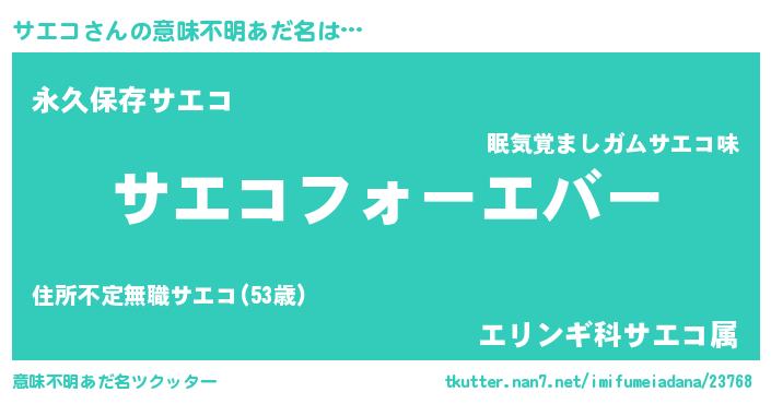 | 欧米人風あだ名 | 『サエコクリステル』『トリンドルサエコ』 |