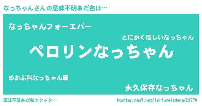 | 胡散臭い通販商品みたいなあだ名 | 『モテモテ間違いなし霊験あらたかなお札…その名も「なっちゃん」』 |