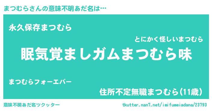 | ヘコむあだ名 | 『まつむら(笑)』『まつぷりん』 |