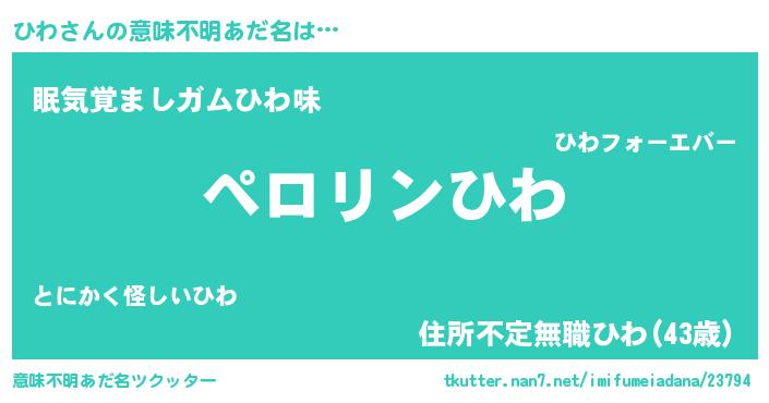 | ポケモン風あだ名 | 『ヒワチュウ』『ヒックウザ』 |