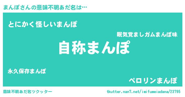 | 女子向けラノベタイトル風あだ名 | 『まんぽなんてお断りですっ。』 |