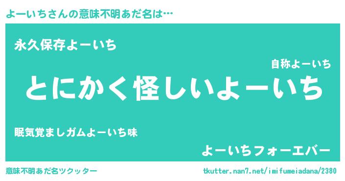 | 男性向けラノベタイトル風あだ名 | 『よーいちの嫁は女の子じゃないと思った?』 |