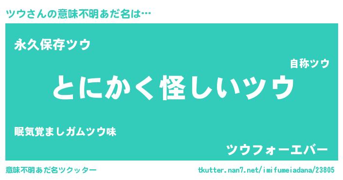| 女子向けラノベタイトル風あだ名 | 『ツウ様がみてる』『ツウの雑貨屋さん』 |