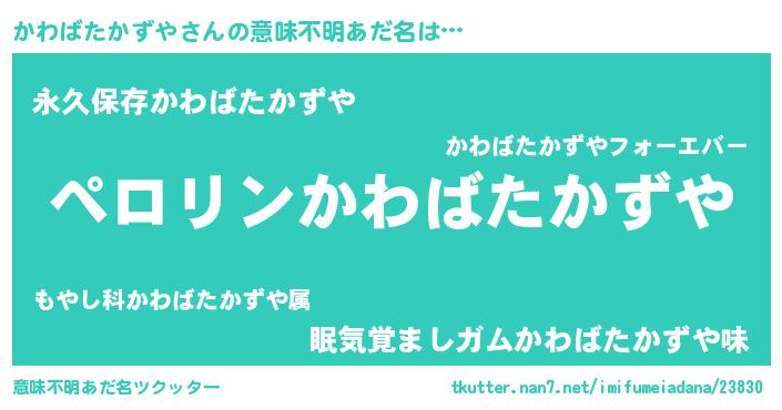 | 胡散臭い通販商品みたいなあだ名 | 『必ず成功するブレスレット…その名も「かわばたかずや」』 |