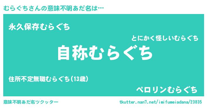 | 男性向けラノベタイトル風あだ名 | 『むらぐちに滅ぼされるだけの簡単なお仕事です』 |