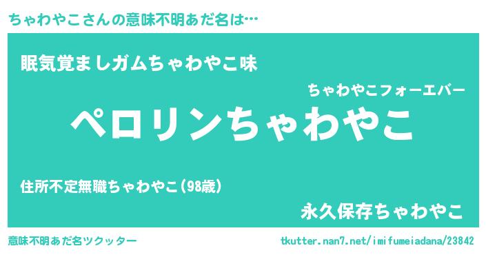 | 胡散臭い通販商品みたいなあだ名 | 『モテモテ間違いなし水晶球…その名も「ちゃわやこ」』 |