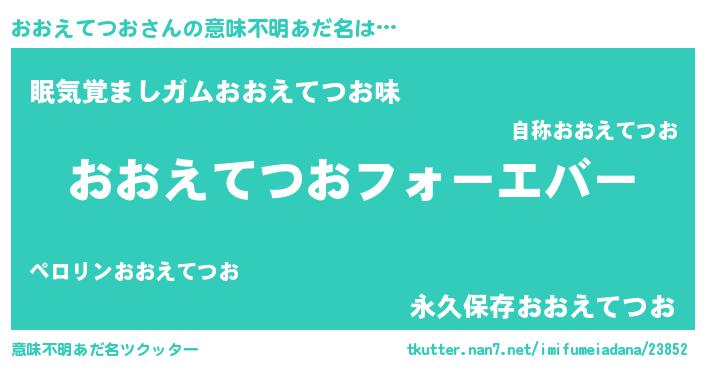 | 男性向けラノベタイトル風あだ名 | 『やはりおおえてつおの青春ラブコメはまちがっている 』 |