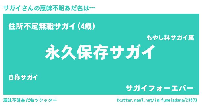 | 胡散臭い通販商品みたいなあだ名 | 『絶対に幸福をもたらす健康食品…その名も「サガイ」』 |